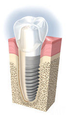 Implants are small devices which are, in effect, false tooth roots. They are placed carefully into the jaw bone and left in place until they bond with the bone.
